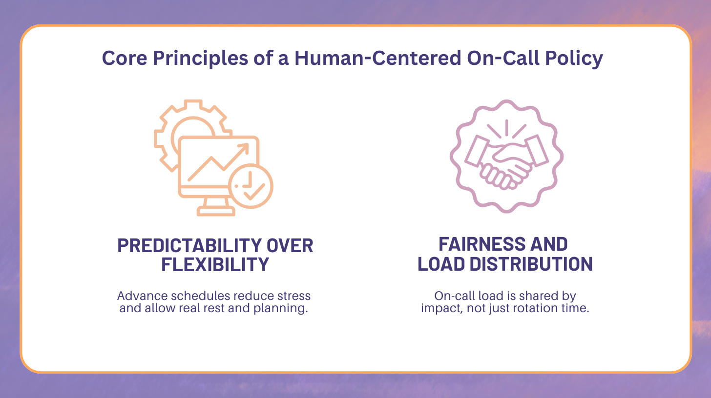 Flexibility sounds attractive, but unpredictability is stressful. Human-centered policies emphasize advance scheduling. People should know when they are on-call well ahead of time so they can plan sleep, family commitments, and recovery.